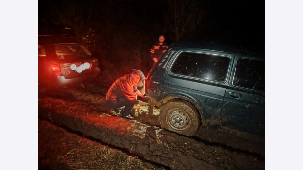 Жители на Боснек помогнаха на закъсали коли на кален път в гората