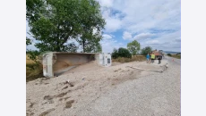 Камион с чакъл се преобърна на пътя за Брезник, пострада шофьорът