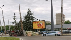 Камион с товар се обърна на възлово кръстовище в Перник