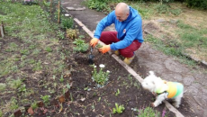 Преди работа: Заместник-областният на Перник сади градинка пред блока