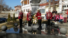 Деца в униформи на стража пред паметника на Левски в Радомир