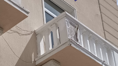 Чисто новата фасада на езиковата гимназия в Перник започна да се руши