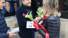 С червен карамфил зарадваха всяка дама младежи от "Обединени патриоти" в Перник