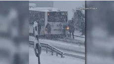 Пътници бутаха автобус на градския транспорт