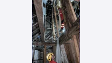 Спешно ремонтират часовниковата кула на Минната дирекция в Перник
