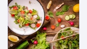 Салата с бейби спанак, репички, краставица и дресинг от мента