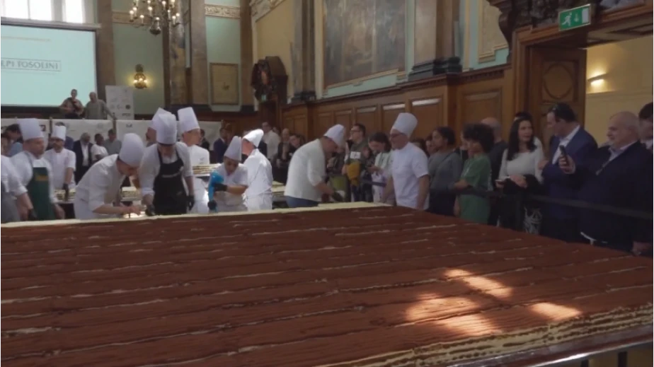 Рекордът беше посветен на крал Чарлз III и кралица Камила в знак на благодарност към страната, в която живее една от най-големите италиански общности в света. Досега рекордът за най-голямо тирамису държеше Милано. /Източник: БНТ