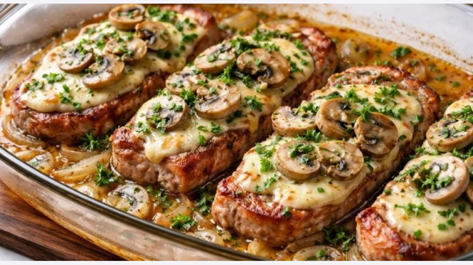 Покрийте съда с капак и поставете във фурната. Печете до пълна готовност, докато пържолите омекнат, а сосът се сгъсти и събере всички аромати.