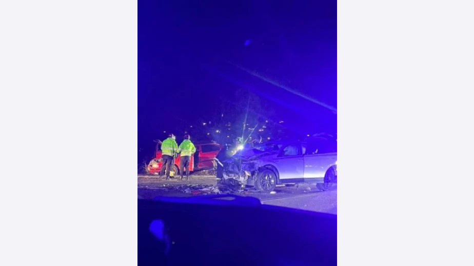 На завой са се ударили челно две леки коли. Те са напълно смазани. Петима души са пострадали, жена е в тежко състояние с опасност за живота.