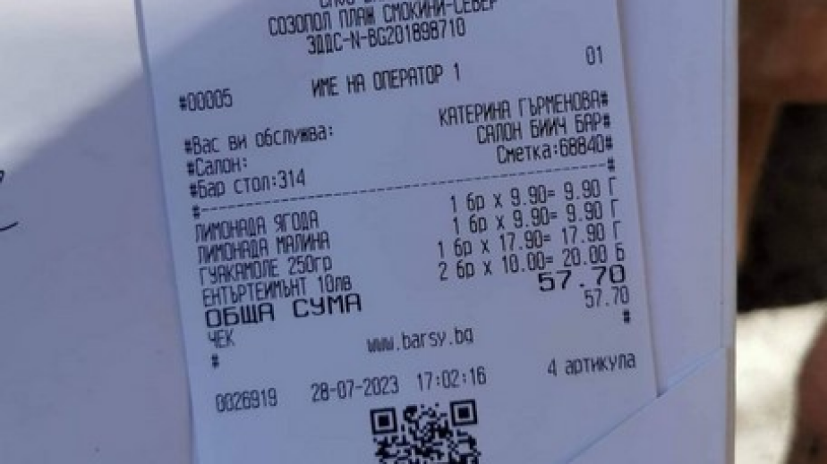 "Седнахме на бийч барчето да пием по лимонада преди да тръгнем от плажа. 20 лв. отгоре в сметката за ЕНТЪРТЕЙНМЪНТ!
