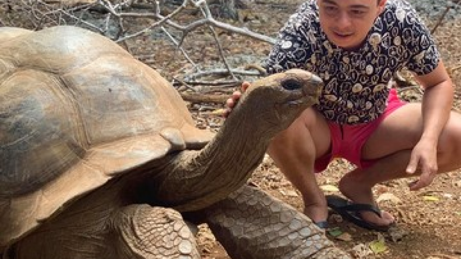 На екзотичната си почивка двамата са заснели уникални кадри. Альошин гали 150-гилограмова костенурка на 120 г., „прегръща“ се на плажа с малка маймунка, хванал е в кадър как лъвове убиват жираф... Не са малко и колоритните фотосите с местните жители.
