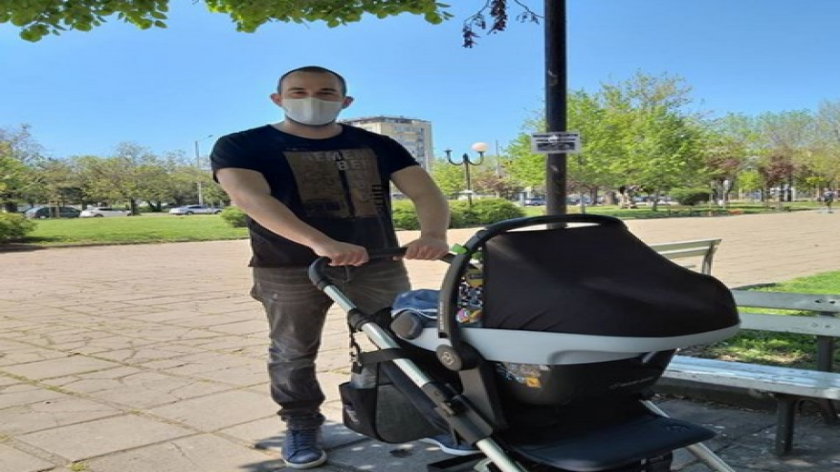 "Най-после изведох престолонаследника", написа Боби в Инстаграм профила си и гордо показа колко му отива да бута бебешката количка в парка.