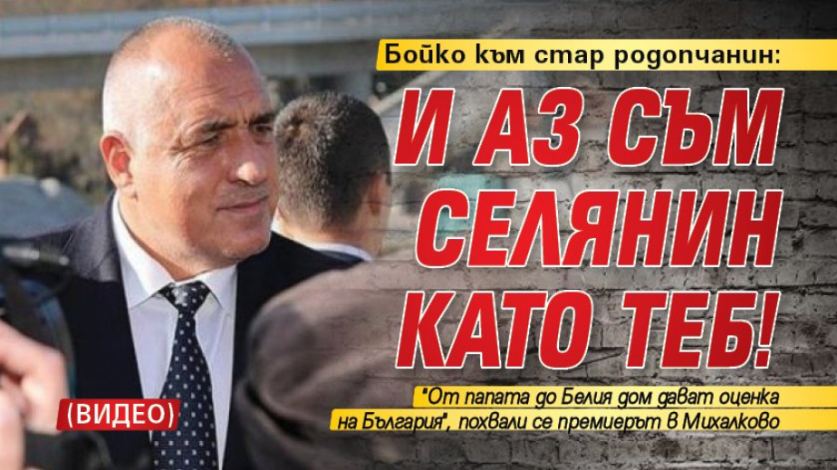 Любопитна случка се разигра в родопското село, където премиерът пристигна с джипа си. Възрастен родопчанин го посрещна с обръщението: "Ваше високоблагородие". Борисов обаче му отвърна: "И аз съм селянин от Банкя, като тебе!"