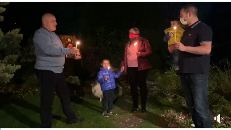 Той прекара празника с внуците си, дъщеря си и зет си. Министър-председателят изпълни обещанието, което даде преди дни, че няма да отиде на църква и ще извика Христос Воскресе от двора на къщата си в Банкя.