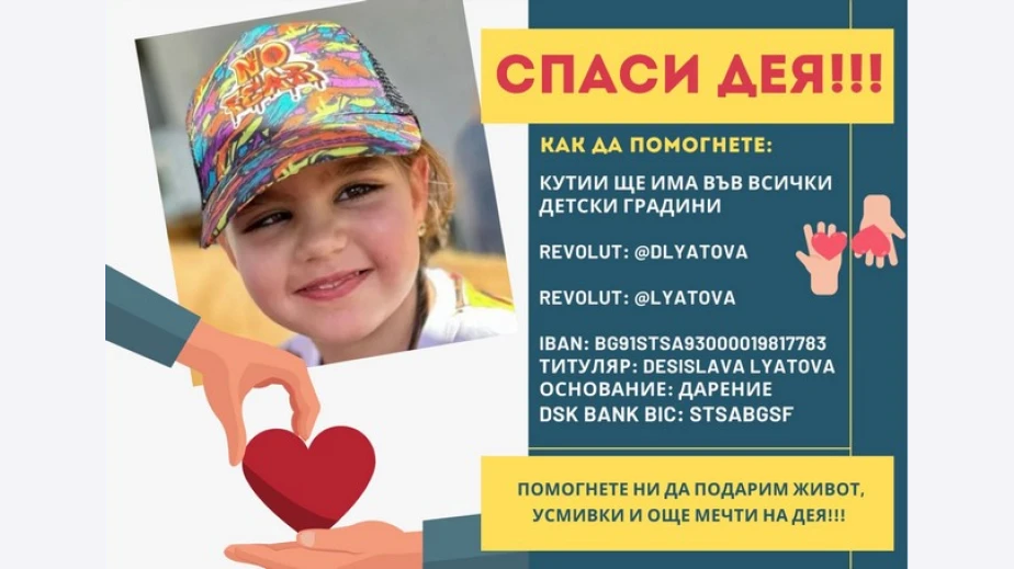 „Всеки, който желае да дари средства, извън нашите инициативи, може да го направи по дарителската сметка или чрез нас. Събраната сума ще бъде обявена и преведена по сметката на детето на 21.05“, допълват от детската градина.