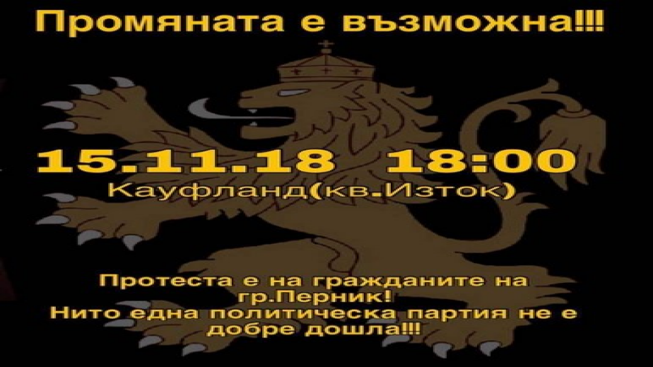 И тази вечер в Перник се организира протест. Сборният пункт отново е на паркинга на хипермаркет „Кауфланд“ в квартал „Изток“, а началният час 18 ч.