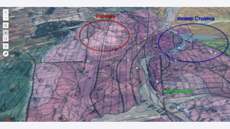 Сателитната карта показва, че геодинамичната активност не е ограничена само до зоната на кариерите – тя засяга и обитаеми райони като с. Боснек. Това създава риск не само за сградите и инфраструктурата, но и за живота на хората при по-силна сеизмична активизация. Или казано с прости думи – деформациите на кариерите и в селото са аналогични, т.е. все едно си гърмят експлозивите в самото село! Данните потвърждават нуждата от мониторинг и незабавно спиране на потенциално индуцирани процеси.