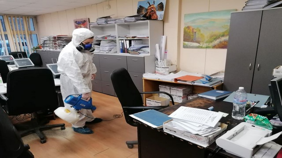 Рано сутринта с дезинфектанти бяха третирани партерът на общинската сграда, деловодството, столът, асансьорите, отдел „Гражданска регистрация“, дирекция „Местни приходи и такси“, ОП „Общинско обслужване“. Помещенията ще се дезинфекцират всеки ден, докато е необходимо.