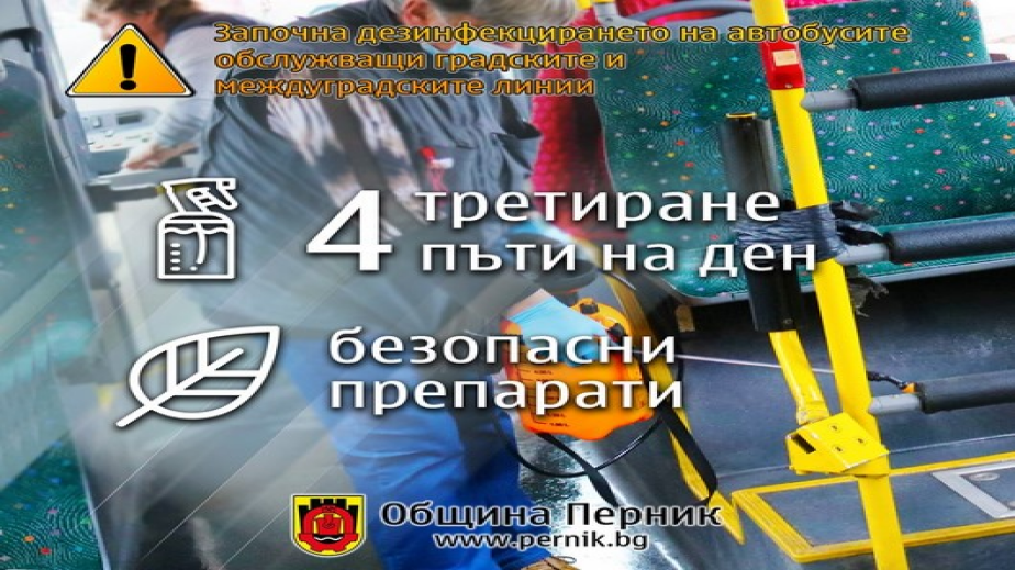 Започна дезинфекцирането на автобусите обслужващи градските линии в Перник. Ще бъдат дезинфекцирани и всички междуградски автобуси.