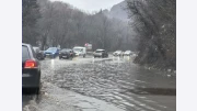 Наводнено пътно платно затруднява движението към Перник