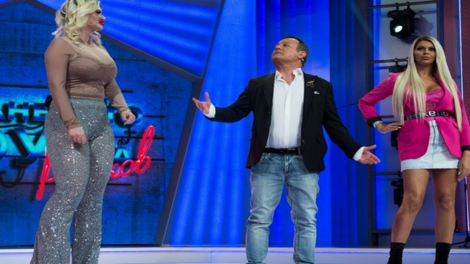 Напълно очаквано един от първите гости на водещия беше жената с най-много пластични корекции в България – 23-годишната Андреа от ж.к.”Меден рудник”, която до този момент има 23 хирургически интервенции по себе си. Днес тя се появи в потресаващ вид с впит в налятото си дупе панталон с пайети.