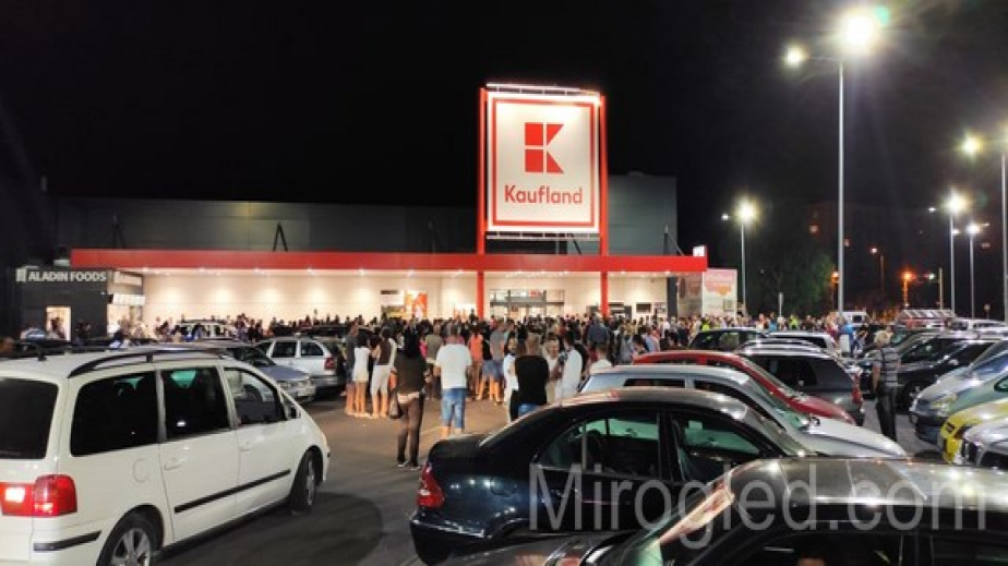 Кадрите са от снощи в 22.30 ч., пред най-голямата хранителна верига у нас – Кауфланд. Пред магазина в центъра на Перник хиляди се стекоха за първото нощно пазаруване обявявано в града. Такова е било положението и пред другата сграда на веригата в квартал „Изток“.
