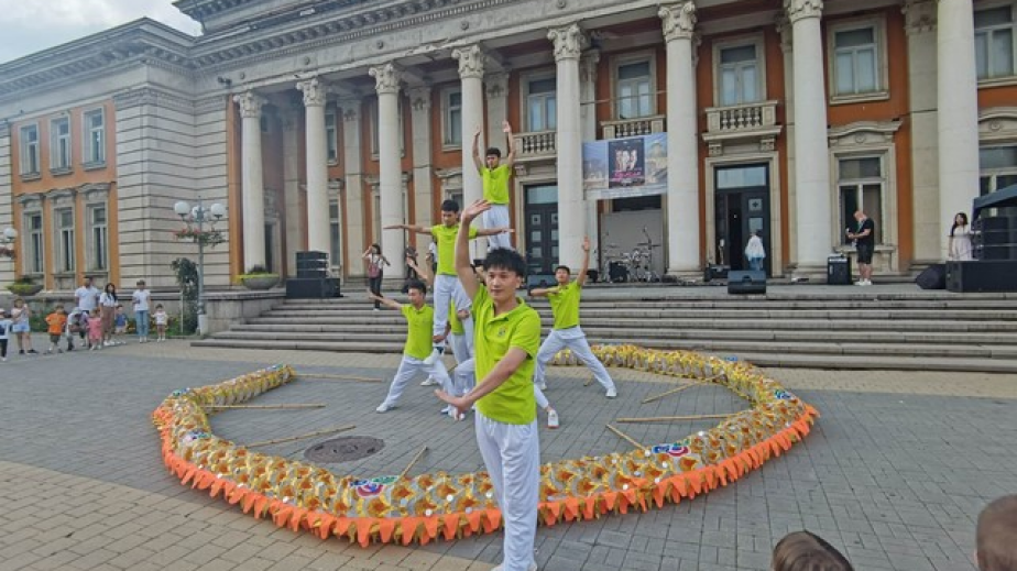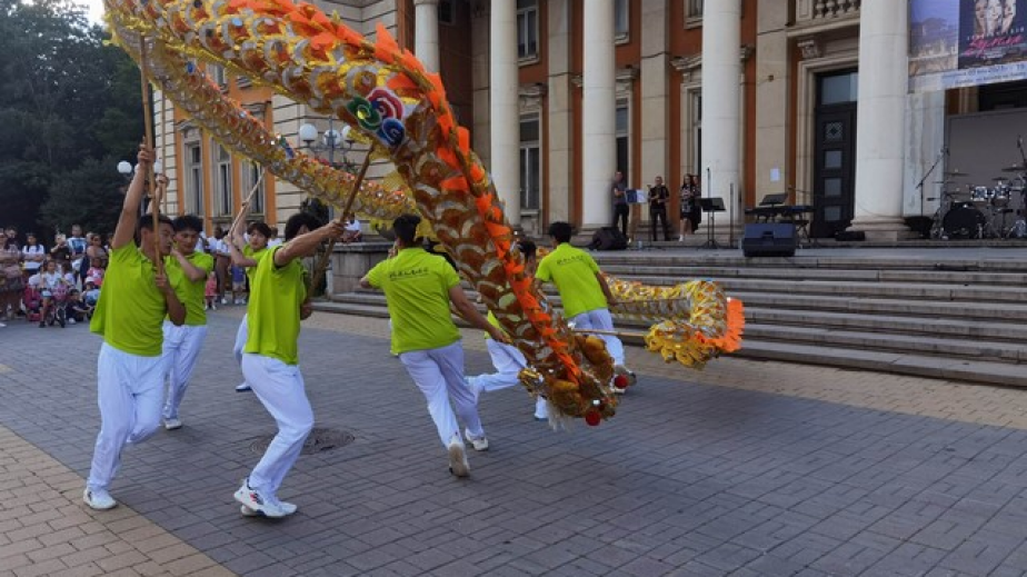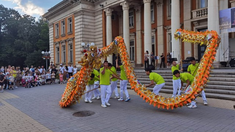 Изключително атрактивното представяне на танц с дракон възхити децата и техните родитли пред Дворц н културата.Чуха се радостни възгласи, а най-малките дори подгониха митичното животно.