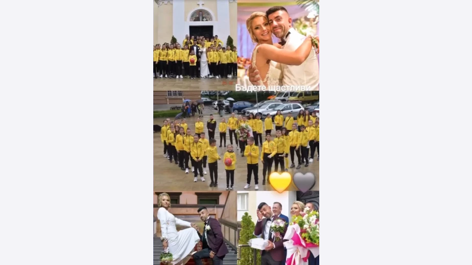 Вълшебната атмосфера беше допълнена от трогателен момент, след като децата от школата на Миньор посрещнаха младоженците с клубни екипи, факли и огромен букет.
