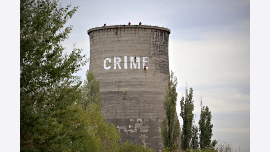 Активисти изписаха думата „CRIME" на 50-метровата охладителна кула на ТЕЦ „Марица 3" в Димитровград. В ранните часове на 16 октомври те се изкачиха до една от най-високите точки на централата, за да дадат ясен знак, че престъпленията срещу хората и природата в региона трябва да спрат незабавно.