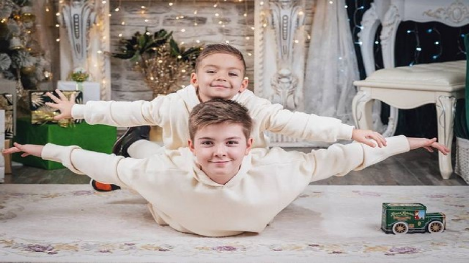 Пред камината и коледната елха, Галка позира с любимия си Галин, а щастието им видимо е запечатено в снимката. Съпрузите Анастасови са в еднакъв аутфит, а именно снежно бели анцузи. В такива са и техните две деца - 12-годишният Стефан и Александър, който е на 4 годинки.