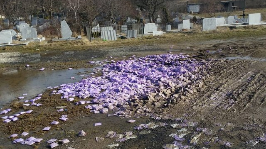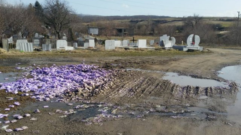 Дамски превръзки заляха гробищния парк в пернишкия квартал Църква. Голямо количество от санитарните материали били изсипани на главния път водещ гробищата.