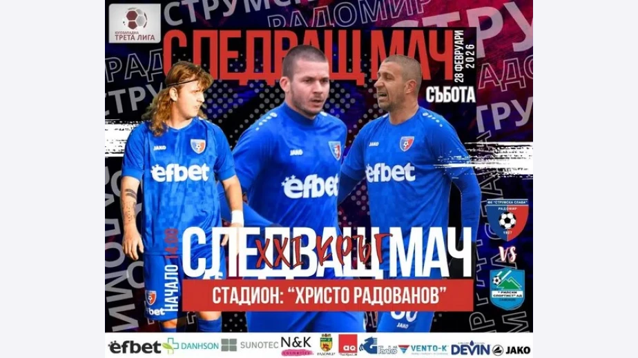 Струмска слава (Радомир) посреща лидера Рилски спортист (Самоков) в голямото дерби на сезона в Югозападната Трета лига. Двубоят е навръх Тодоровден, в събота от 14:00 ч. на стадион „Христо Радованов“ в Радомир, съобщават от официалния сайт на клуба.
