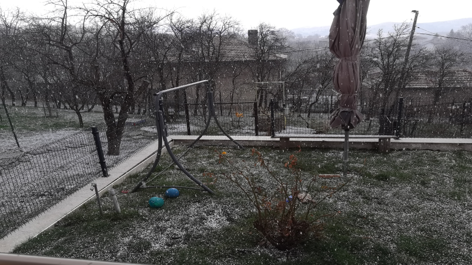 За няколко минути всичко побеля. Топчетата не бяха големи, но валежът продължи около 10 минути.