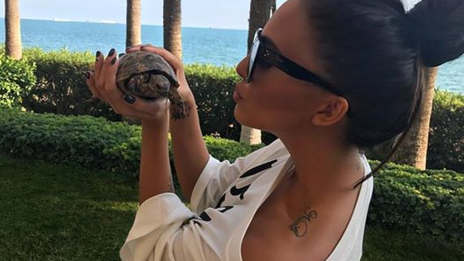 На фона на морски изглед и палми, плеймейтката се радва на костенурка, която сякаш всеки момент ще целуне. Не се знае дали това е домашен любимец или жител на мястото, където Николета разпуска.