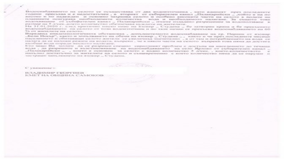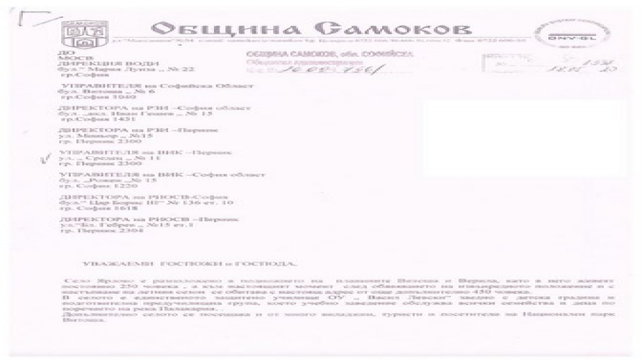 От дружеството приложиха всички изпратени и получени документи от и към него във връзка със скандала разразил се след намесата на МВР, ДАНС и прокуратурата след четвъртото запечатване на шахтите на неправомерно отклоняваната вода от Палакарийския канал за самоковското село.