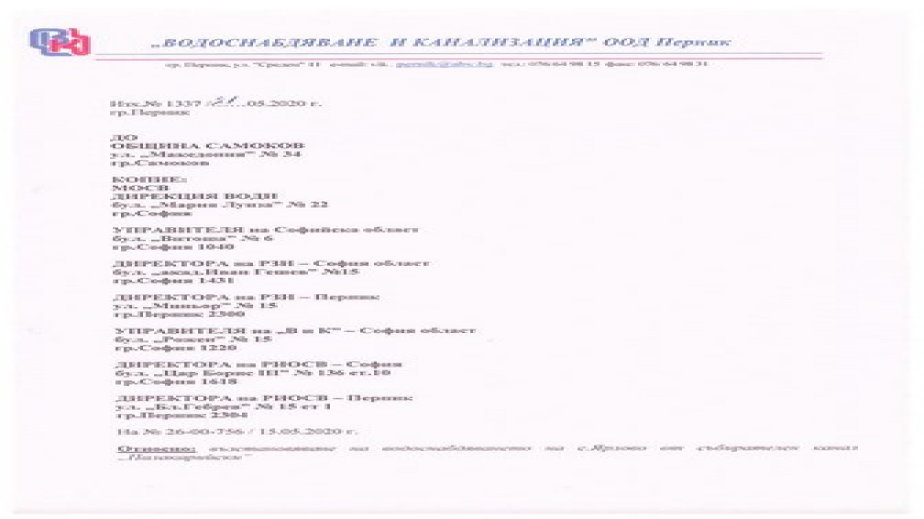 Само три дни след това на 21 май 2020г. управителят на „ВиК“Перник инж. Борислав Иванов изпраща писмо до Владимир Георгиев с копие до МОСВ, Областният управител на Софийска област, директорите на РЗИ – Перник и София, Управителят на „ВиК“ София и директорите на РИОСВ в София и Перник, в което се посочва, че възстановяването на водоснабдяването на с. Ярлово не е в правомощията на „Водоснабдяване и канализация“ ООД - Перник.