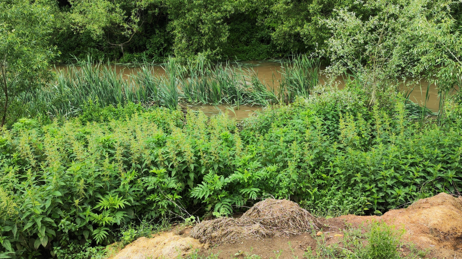 На снимката се вижда, че нивото на реката при гр. Батановци е на повече от 3 метра от критичното.