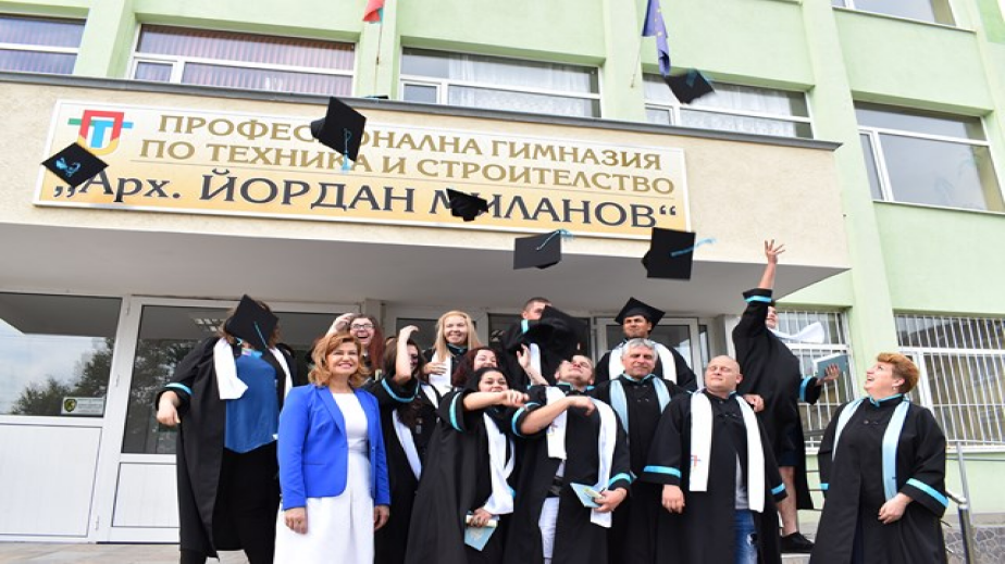 Ирена Соколова и Богомил Грозев специални гости на церемонията по връчване на дипломите в ПГТС „Арх. Йордан Миланов" През учебната 2018/2019 г. седемдесет и трима ученици завършват средното си образование в гимназията по специалностите: „Компютърна графика", „Интериорен дизайн", „Строителство и архитектура", „Парково строителство и озеленяване" и „Електрическа инсталация". Шестима са отличниците на випуска.