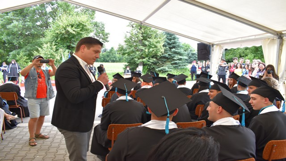 Зрелостниците бяха поздравени от областния управител Ирена Соколова и специалните гости на събитието – Богомил Грозев – едно от емблематичните лица на „Нова телевизия" и Димитър Живков – член на УС на Камарата на строителите в България и собственик на фирма от бранша.