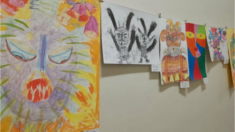 Малките художници показват Сурва през техния поглед в 35 рисунки и 5 сурвакарски маски. Куратор на изложбата е Снежана Велинова- ръководител на „Ателието“ при Художествената галерия.