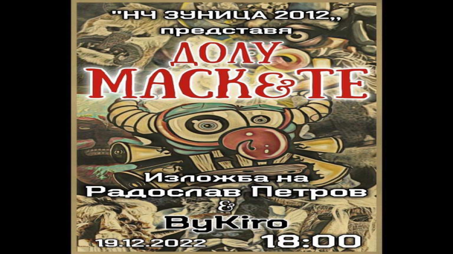 Най-новото читалище в Перник - НЧ „Зуница„ организира изложба „Долу маските“, в която в едно ще бъдат преплетени няколко похвата в изобразителното изкуство от пернишкия художник ByKiro и ученици от школата по Изобразително изкуство и сурвакарските маски на кмета на гр. Батановци Радослав Петров. С изложбата искаме да дадем своя дан към това изкуство и да превърнем нашето споделено арт-пространството в храм на традицията и обичаите”, пишат организаторите.