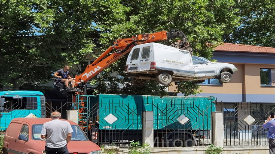 Три бракувани преди 10 години автомобила на Български пощи бяха изнесени от паркинга на институцията в центъра на Перник по изключително атрактивен начин. Цялата операция отне не повече от 5 минути.