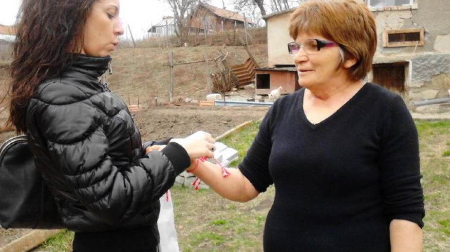 Кандидатът за кмет на пернишкото село Богданов дол Николета Максимова закичи с мартеници своите съселяни.