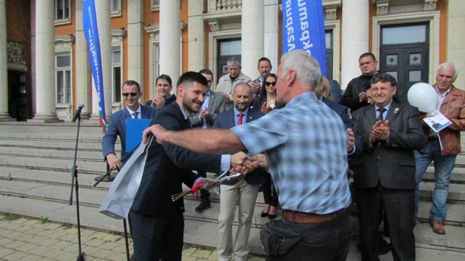 „Ако очаквате да държа политическа реч, ще ви разочаровам, защото аз не съм политик. Искам обаче да споделя с вас едно вълнение. Когато приех да съм кандидат за кмет от листата на „Демократична България“, взех телефона си и се замислих, на кои приятели да се обадя за подкрепа. Оказа се, че много от тях не са тук, а живеят в чужбина. Аз самият бях в Англия 6 години. Една древна мъдрост гласи, че камъкът тежи на мястото си. Много от моите състуденти в Англия при завършването останаха там. Аз избрах да се върна, защото в лицето на „Демократична България“ видях шанс за разбиване на статуквото. Искам нашите съграждани да могат да планират бъдещето си тук“, заяви кандидатът за кмет Велизар Варадинов. Той получи като подарък от симпатизант сноп от пръчки с посланието, че ако всички са заедно, няма кой да ги победи.