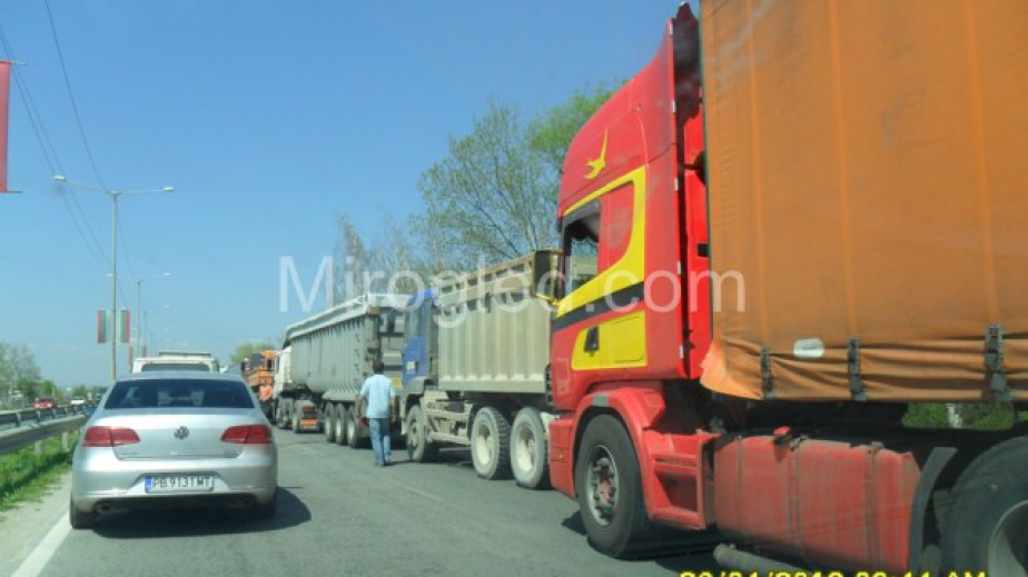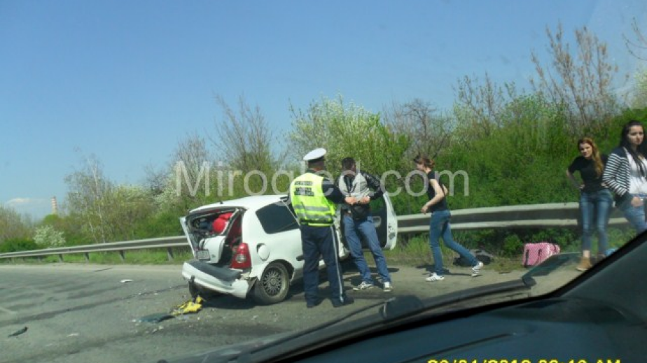 На пътя са се сблъскали две леки коли. Те са смазани до неузнаваемост. Катастрофата обаче е затруднила силно движението в района. Затова колоната от автомобили е от пътния възел Даскалово до района на спирка „Метал”. На мястото има полиция, която регулира движението. Органите на реда отбиват автомобилите в свободното платно, тъй като тирове и камиони са образували огромна опашка в дясното платно за движение.