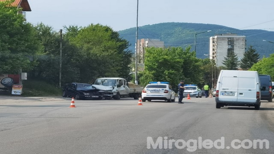 От силния удар леката кола се завъртяла странично на пътното платно. Катастрофата е станала около 9,30 тази сутрин при ЦР База, на изхода по трасето за Трън и Брезник. На място на инцидента има полиция, която контролира движението на автомобилите и в двете посоки.