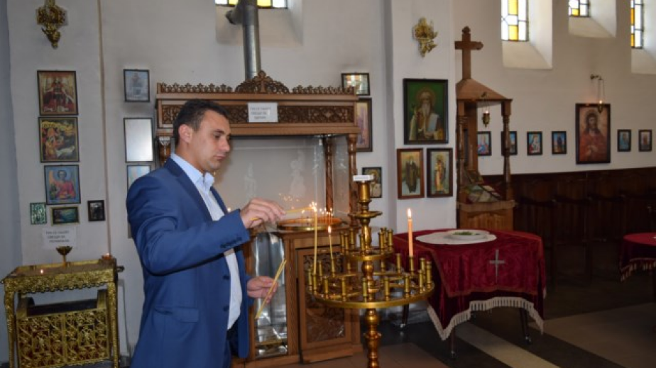 Инж. Костадинов поздрави събралите се в храма десетки миряни, дошли да отбележат храмовия си празник, и заедно с тях запали свещичка и се помоли за здраве и благоденствие.