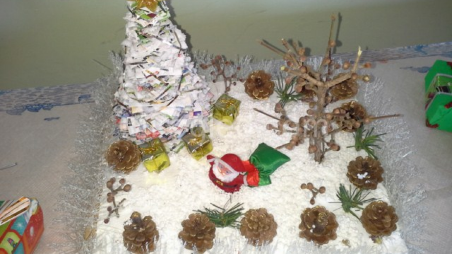 Ученици от 8 до 11 клас изработиха екодърво от картон, стари вестници и стиропор, еко къща, изработена от стари кутии и вестници, множество коледни картички, коледни късмети, подаръчета от стиропор, декоративни цветя от шишчета за грил и стари списания, както и много други. Изделията бяха направени в специално създадено за целта ателие.