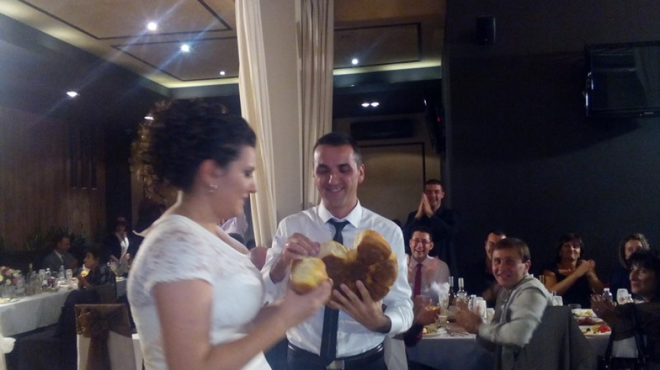Сватбеното тържество се състоя в един от най-хубавите ресторанти в Перник. При традиционните ритуали обаче се оказа, че дамата е доста по-пробивна от младоженеца. Мария не само настъпи Бисер, но и откъсна по-голямото парче от питката. Менчето „гадател“ за деца пък показа, че двамата ще имат близнаци. Едва ли обаче това е само повери, защото самата Мария има сестра близначка - Мила.