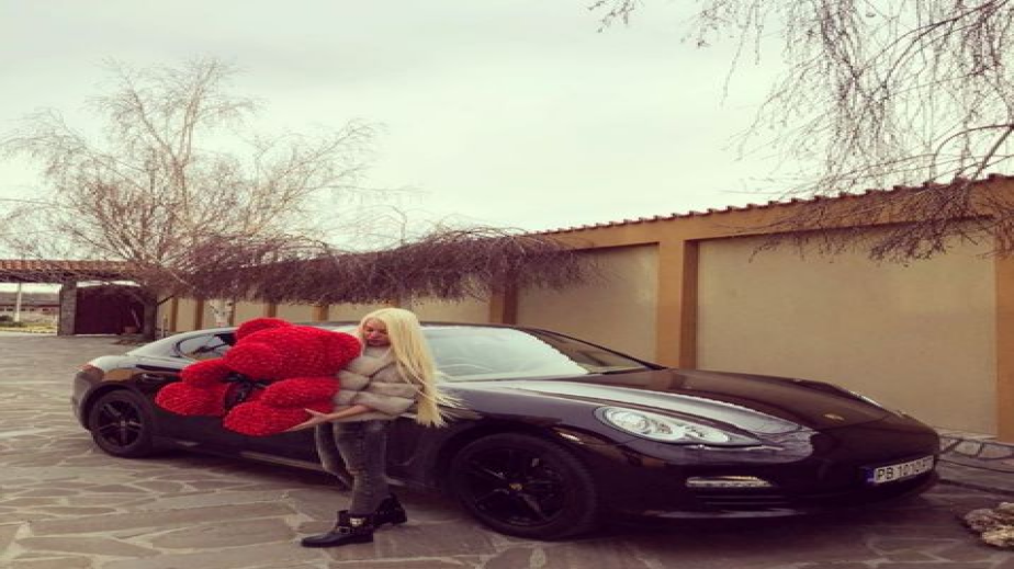 Любимият на русокосата красавица – Атанас Петров пък я изненада с голямо червено мече. То обаче, не е плюшена играчка, а 70-сантиметров сувенир под формата на малкия бозайник украсен с над 2000 розички.